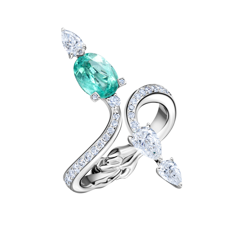 Paraiba tourmaline cut oval. Pear-cut and round-cut diamonds.
